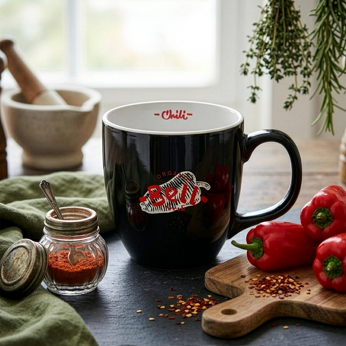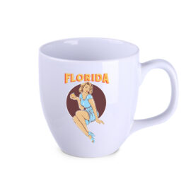 A mug with a very large capacity and a classic round shape. It has a large handle that is comfortable to hold. It comes in few color versions.