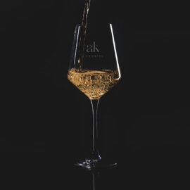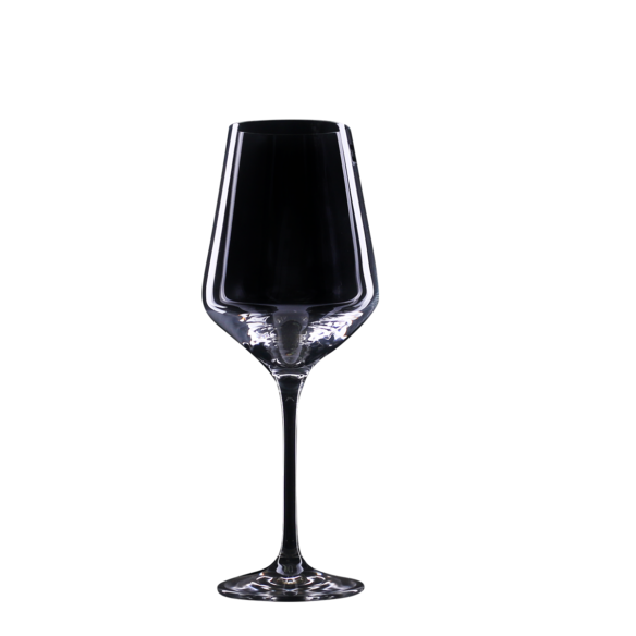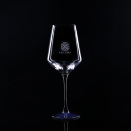 An elegant white wine glass, the decoration of which will perfectly complement the unique brand message.