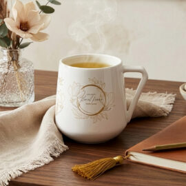 A porcelain mug with an interesting shape and an avant-garde handle. It will emphasize the uniqueness of the promoted brand in an original way.