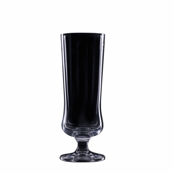 A glass with a slim, tall shape, dedicated to cocktails and layered drinks. It has a practical footer. Made of glass of European origin.