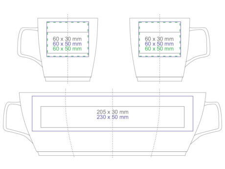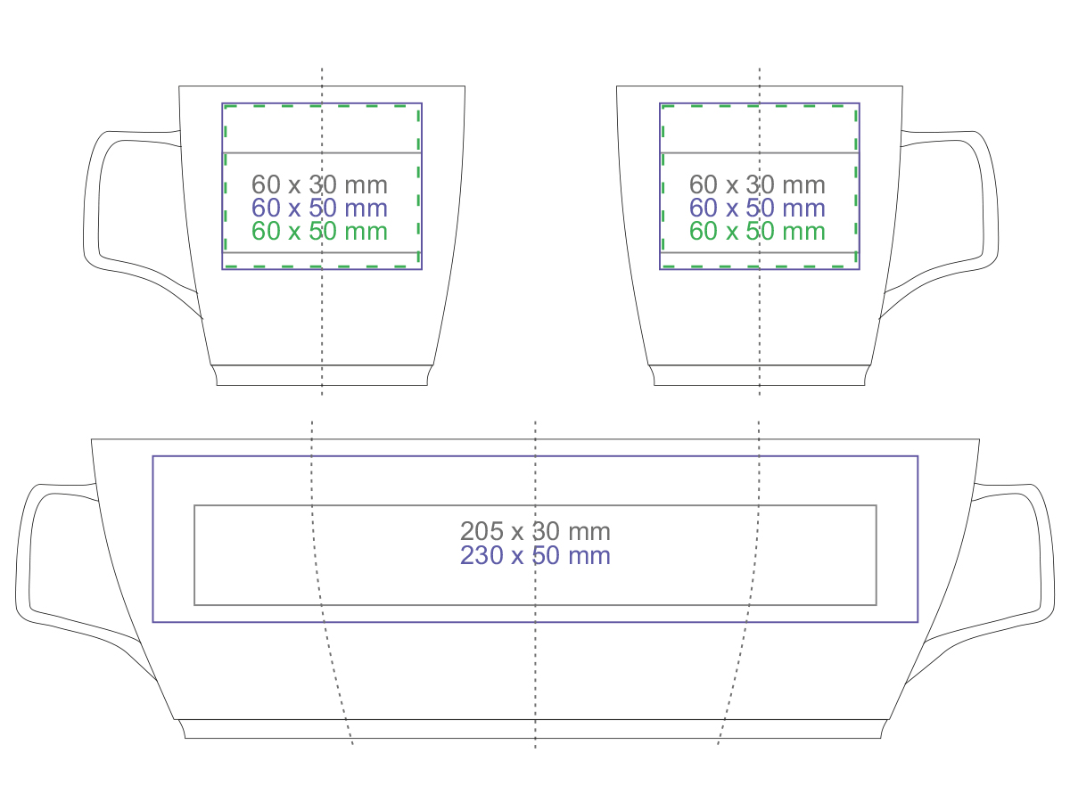 Porcelain mug with an oval shape. It has an original, eye-catching handle and extensive coloring possibilities.