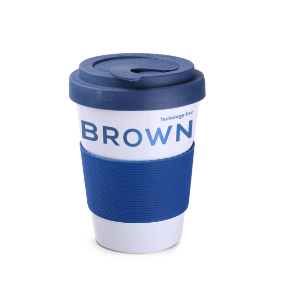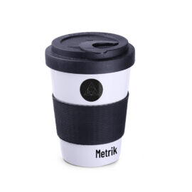 Mobile mug with great branding possibilities. Thanks to the double wall, it keeps the liquid inside warm for longer and protects your hands against burns. It has a silicone cover with a special closure that prevents liquid from spilling out and a band that is available in many color options.
