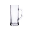 A tall beer mug with straight walls made of thick-walled glass. It has a comfortable handle and great decoration possibilities. Produced in Europe.