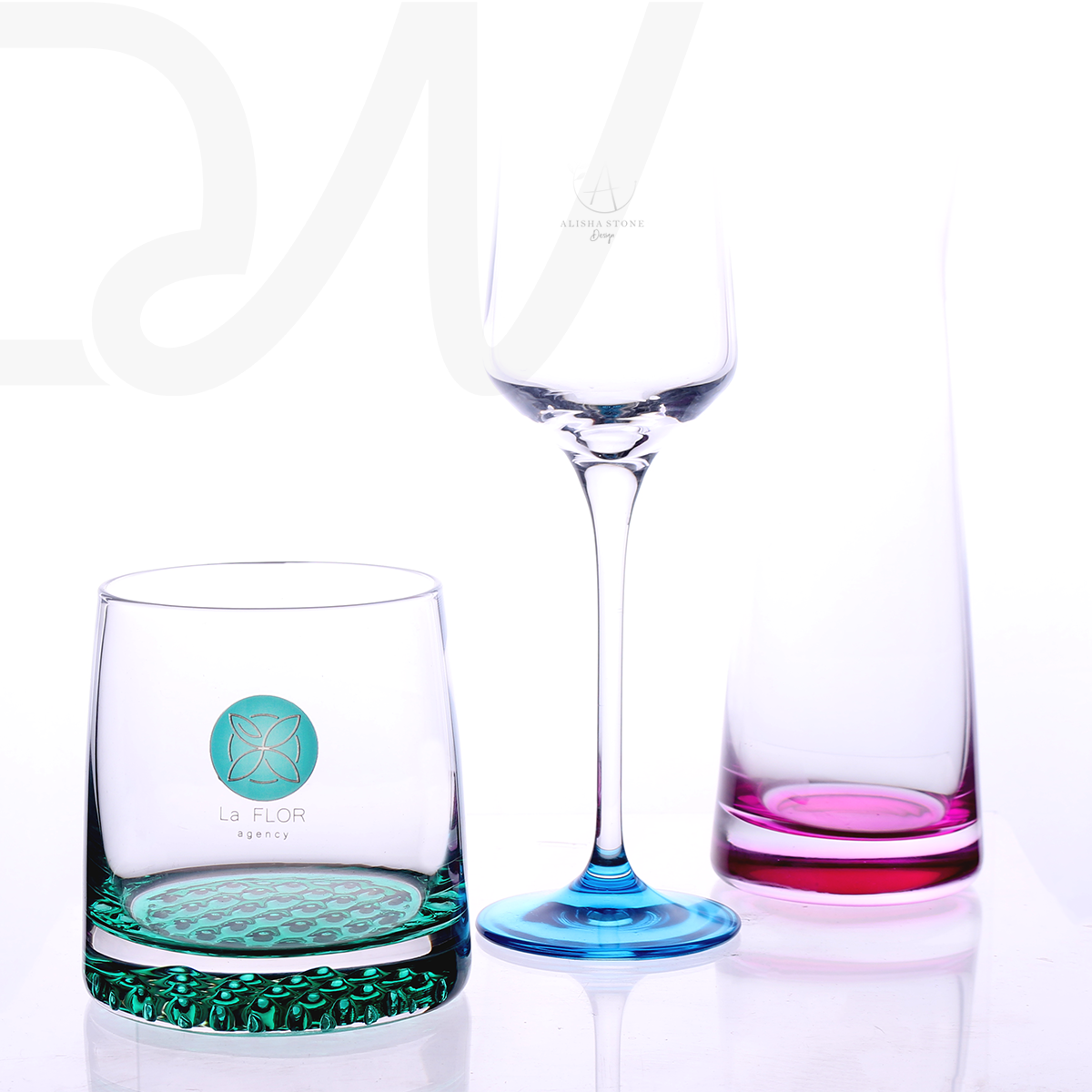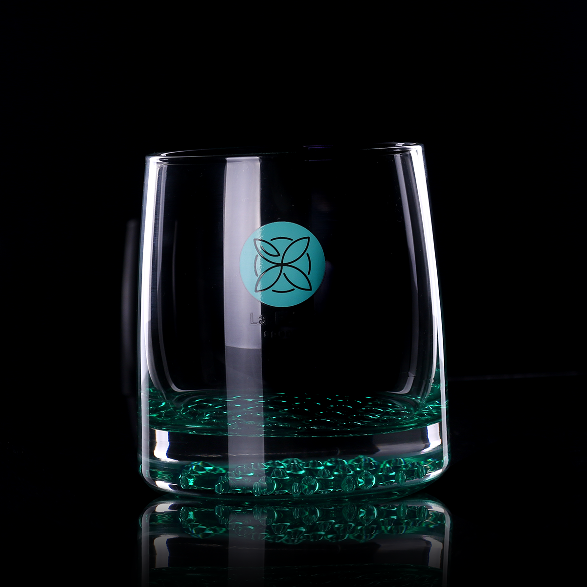 Unique, richly decorated bottom of the glass