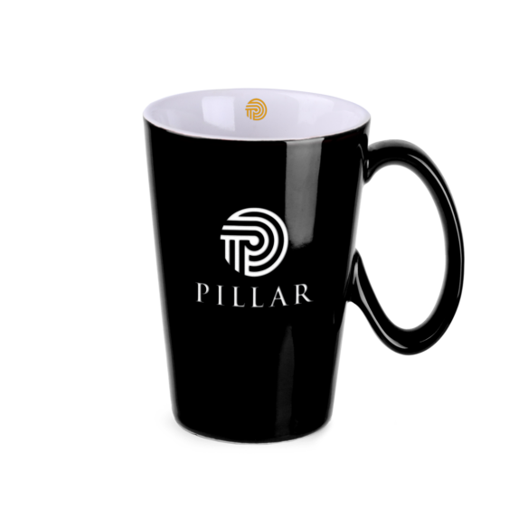An interesting trapezoidal-shaped mug. It has an exceptionally ergonomic handle that makes it very comfortable to use. It comes in 4 color options to choose from.