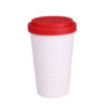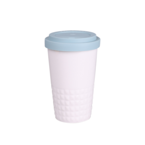 Designer mobile mug made of porcelain. It has a characteristic finish of the lower part in the form of protrusions. The model is intended for active people, lovers of trips and travel. Thanks to the rare internal structure of double porcelain walls, it is characterized by an increased level of thermal insulation. It has a cover available in 8 colors: white, orange, red, green, navy blue, brown, black and gray.