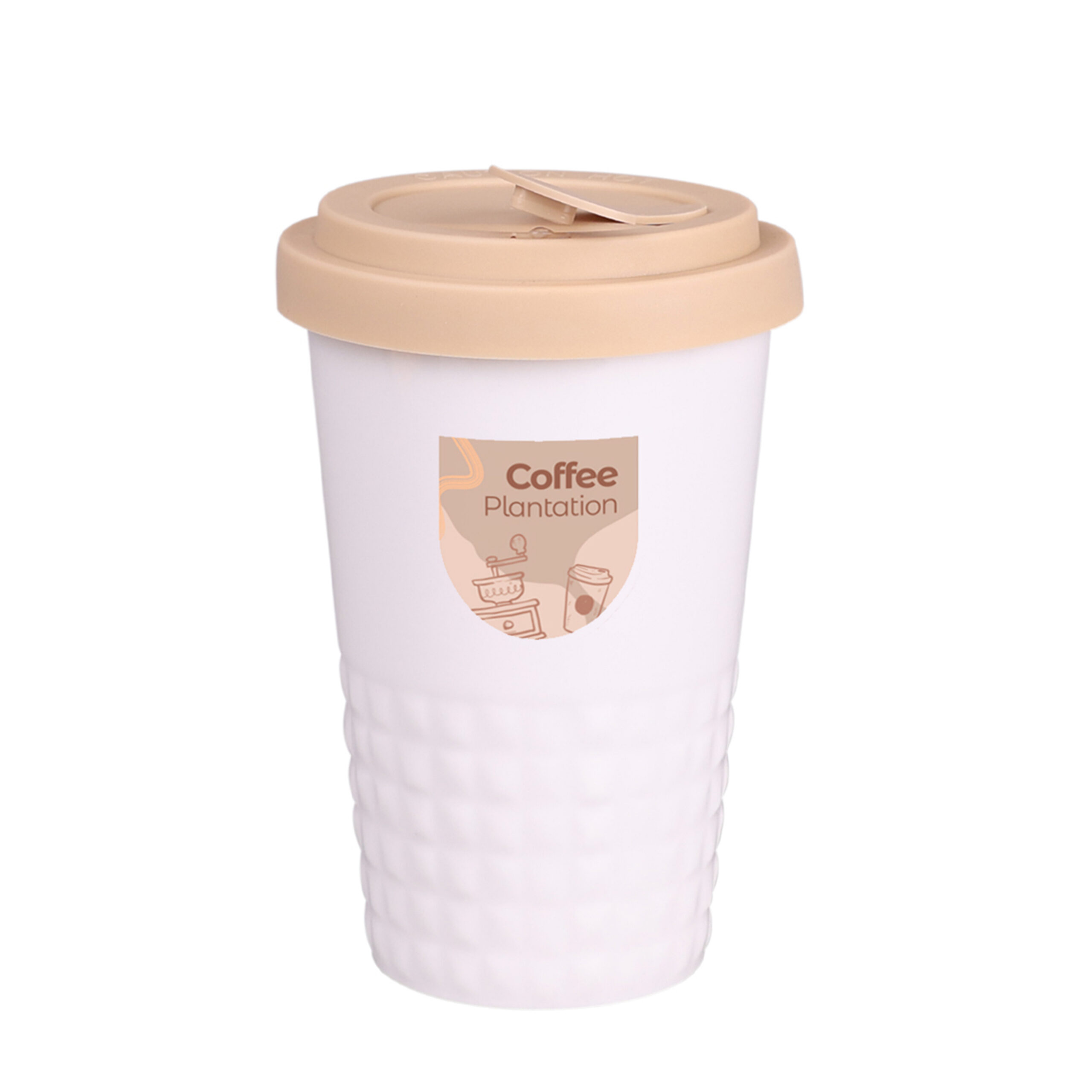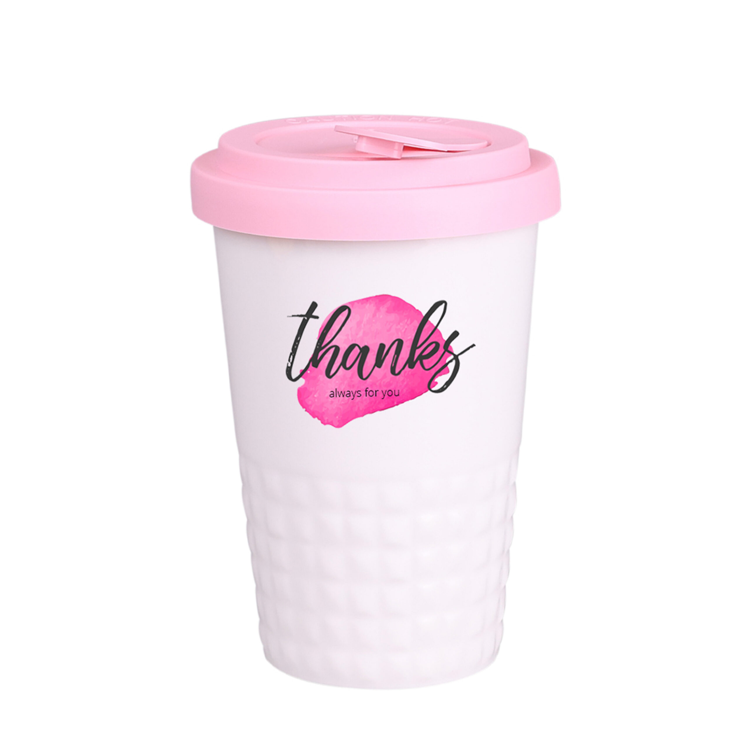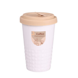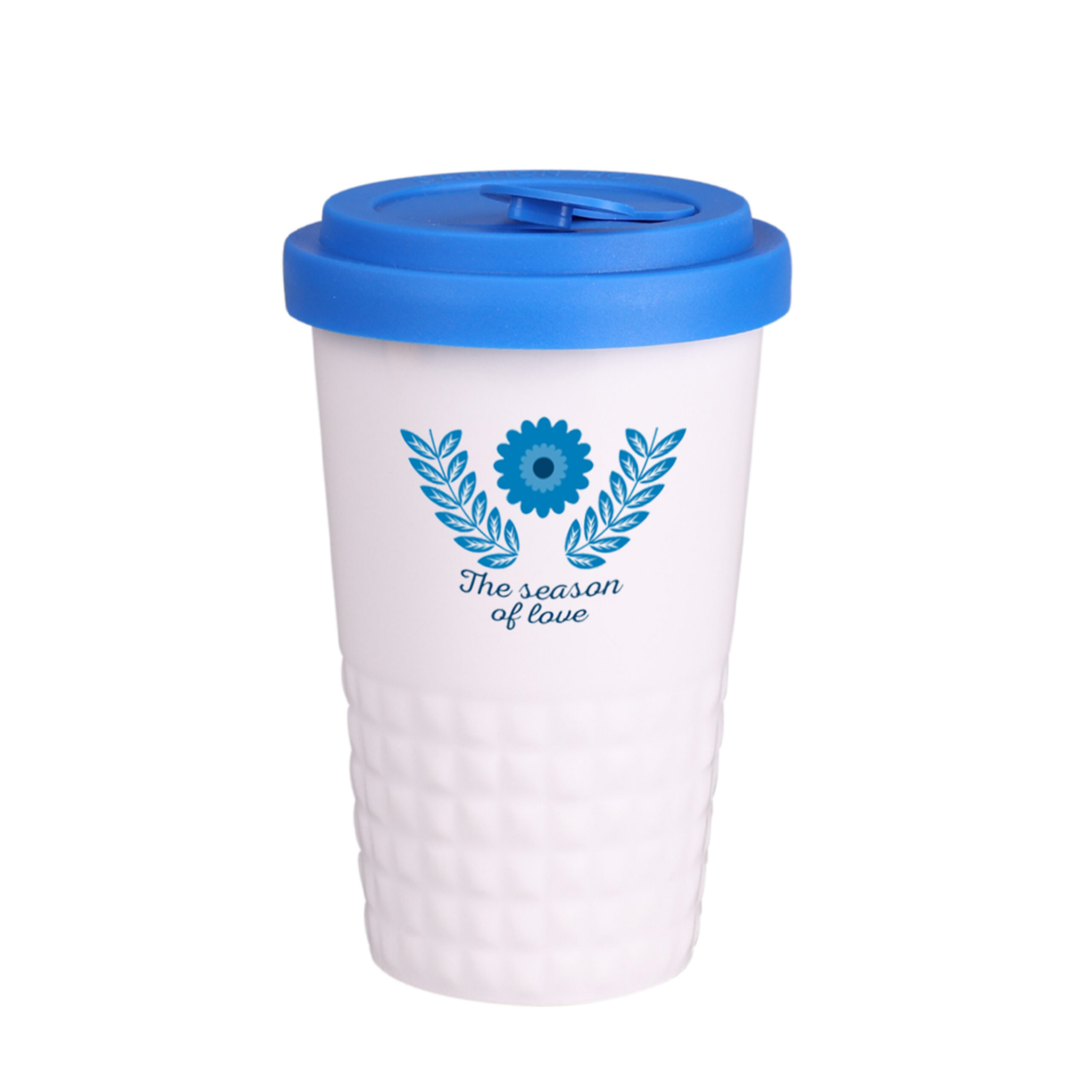 Designer mobile mug made of porcelain. It has a characteristic finish of the lower part in the form of protrusions. The model is intended for active people, lovers of trips and travel. Thanks to the rare internal structure of double porcelain walls, it is characterized by an increased level of thermal insulation. It has a cover with a tight cap, available in several colors.