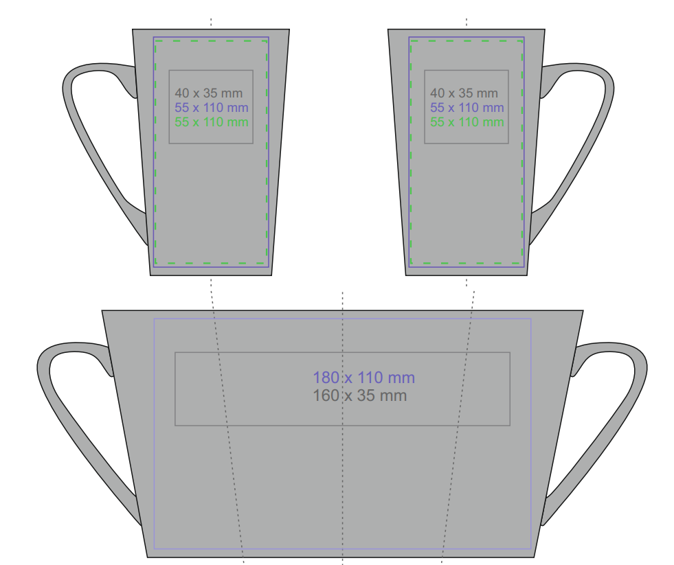 Classic mug with a trapezoidal shape and high walls. It is distinguished by an elegant gray matte finish. It is perfect for making large decorations on it.