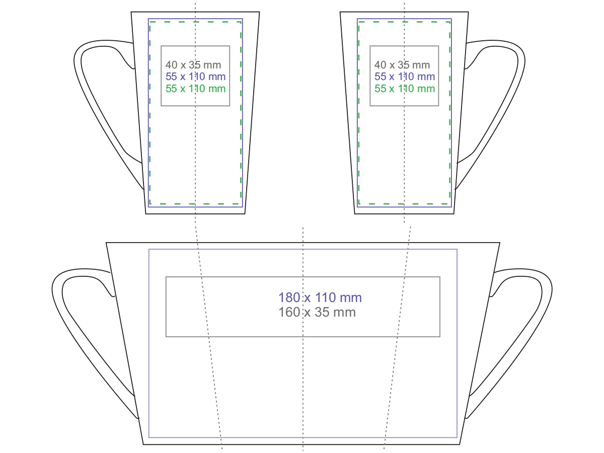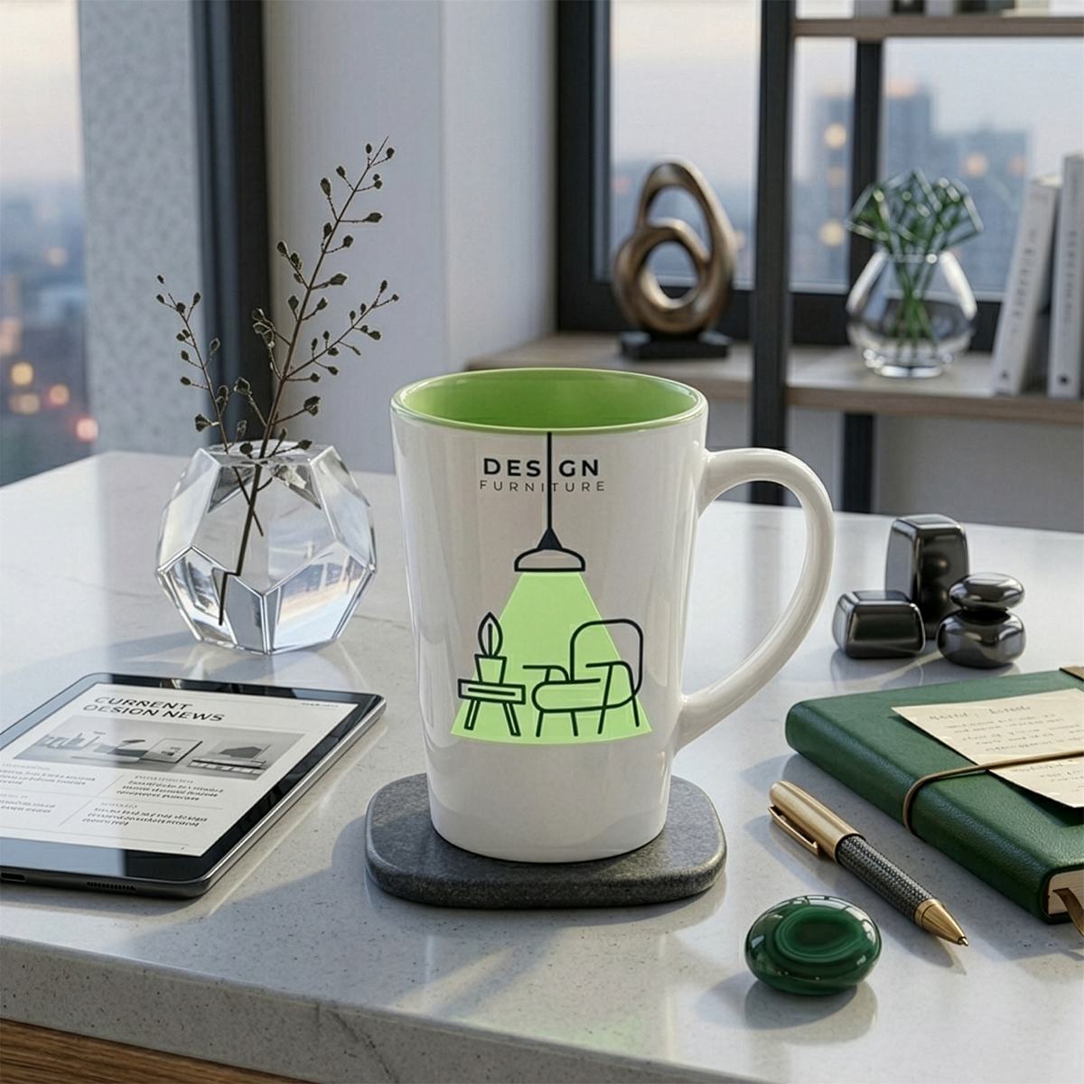 Classic mug with a trapezoidal shape and high walls. It comes in six interior colors to choose from. Perfect for large and demanding decorations.