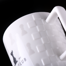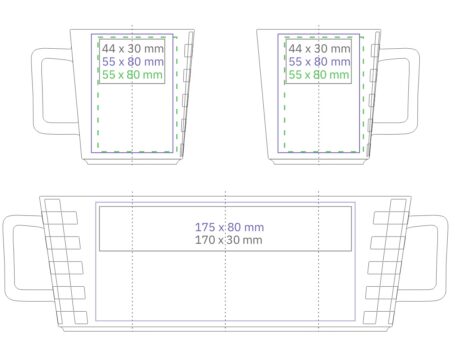 Elegant mug made of high quality porcelain. It has original insets on both sides of the handle, which make it look very designer. It has an ergonomic handle.