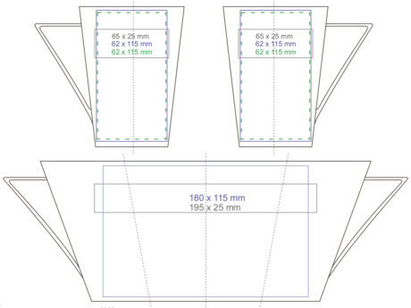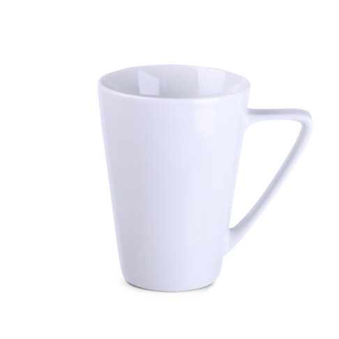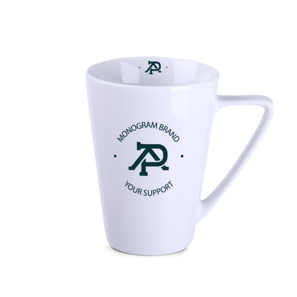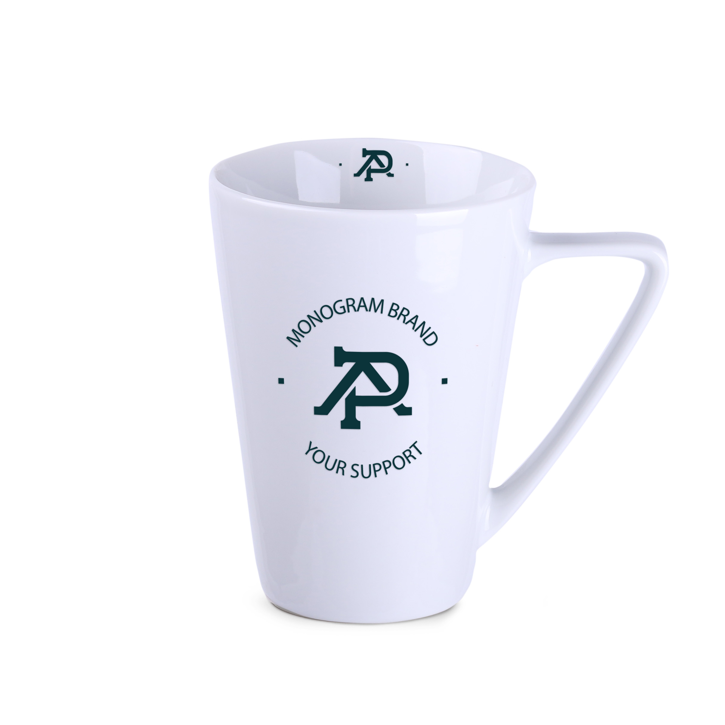 A spacious mug with a geometric shape of the body and handle. Made of high-quality porcelain. Perfect for applying extensive decorations.