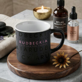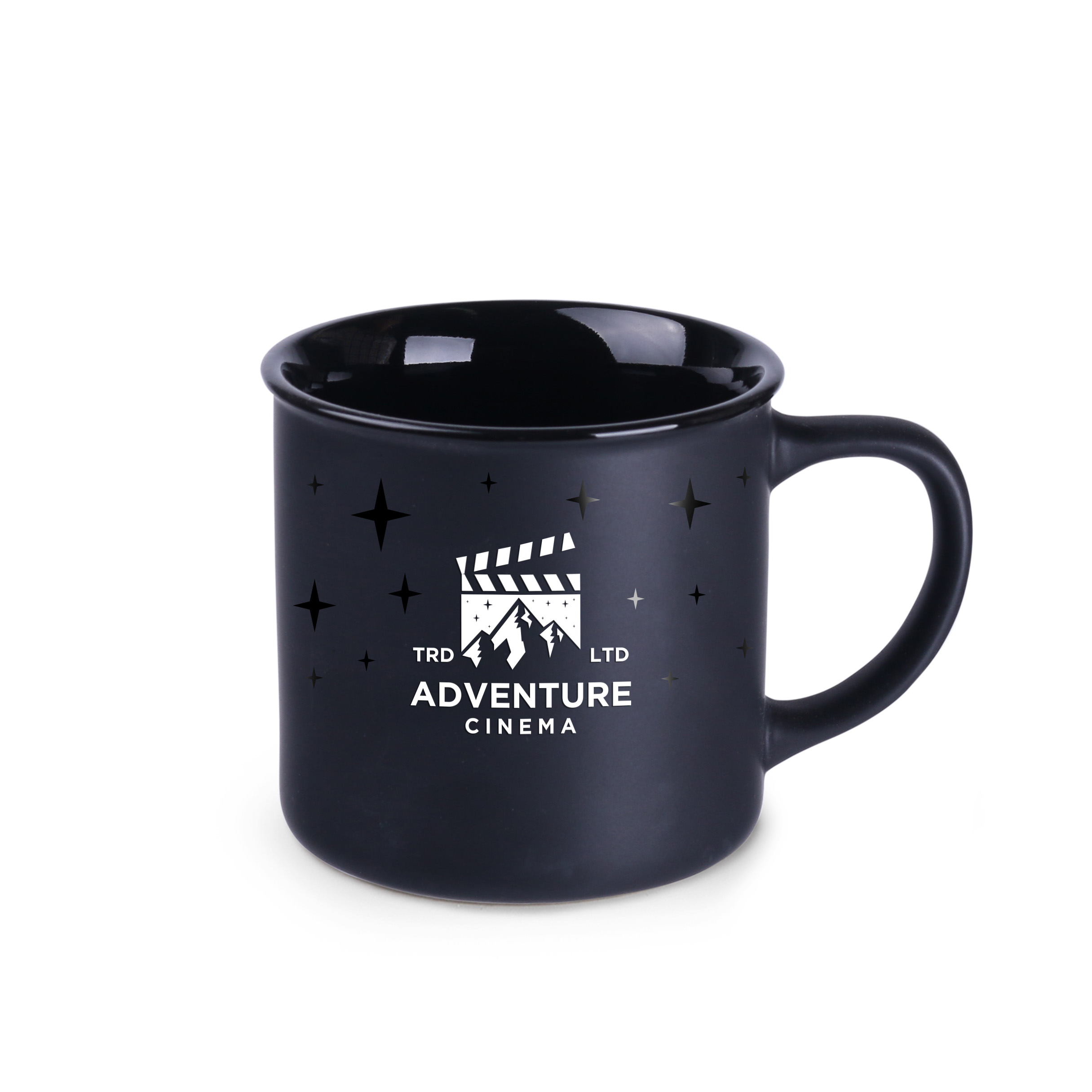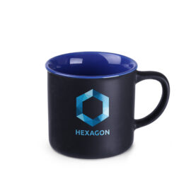 A fashionable minimalist mug with an elegant matte black surface. It comes in several colorful interior options. It has great printing possibilities. It will be a perfect addition to stylish interiors.