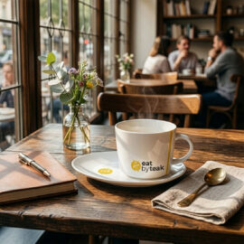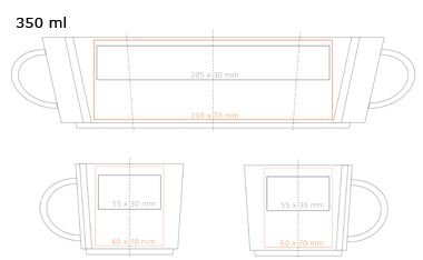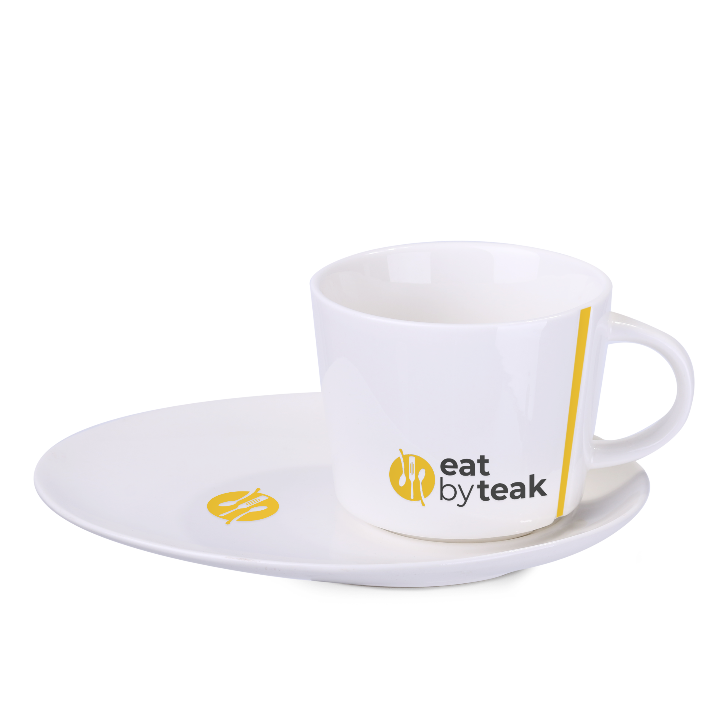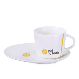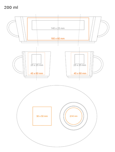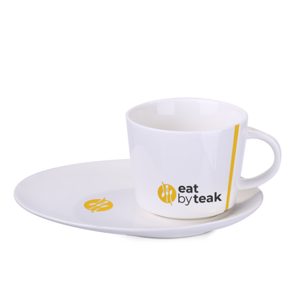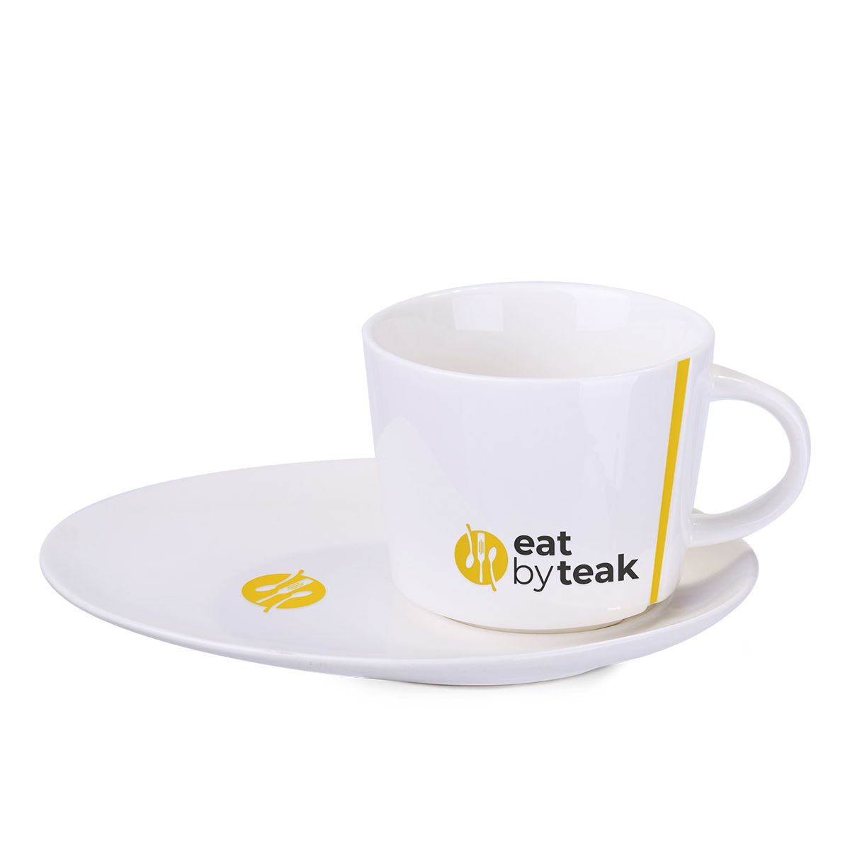 Original cup made of porcelain. It is distinguished by interesting embossing on both sides of the ear. It will perfectly highlight the unique brand message.