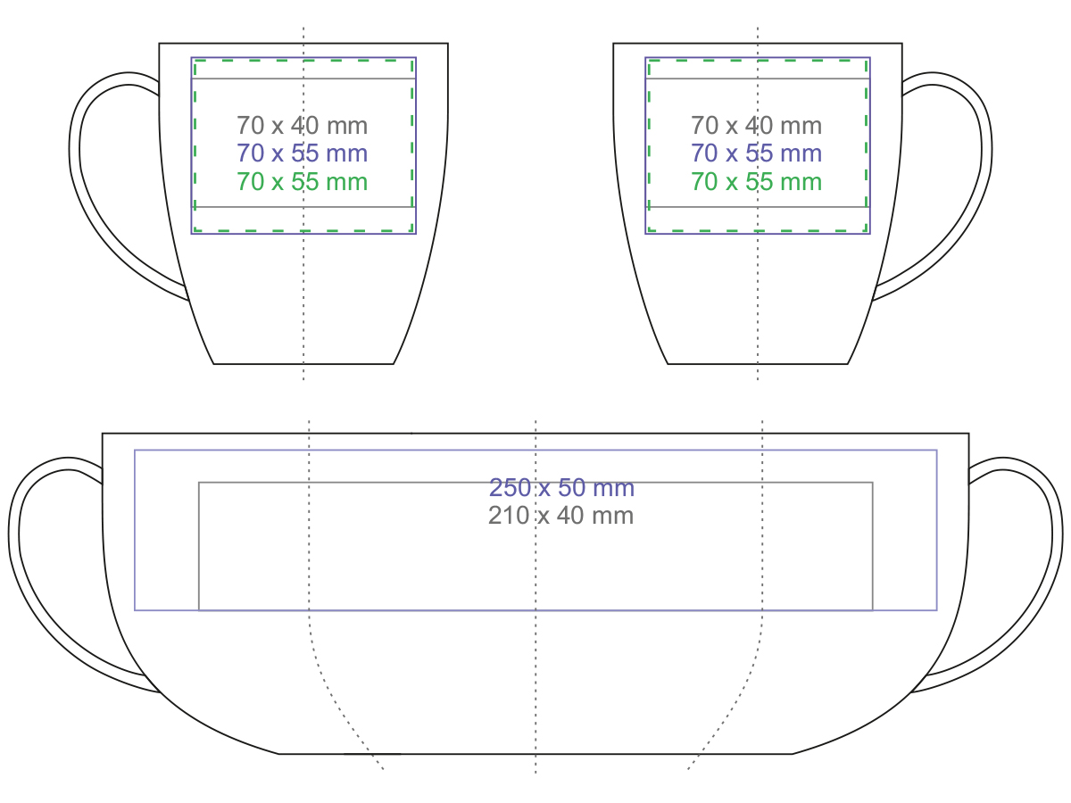 A subtle mug made of porcelain. It has a comfortable handle. Its elegant design will beautifully highlight the promoted brand.