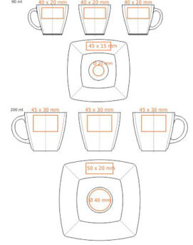 An elegant porcelain cup combined with a dedicated plate. What distinguishes this set is the delicate square finish visible at the bottom of the cup.