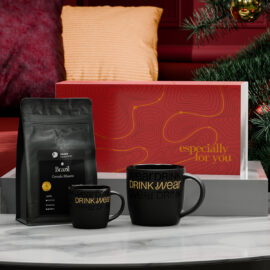 One of our biggest sales hits, the Handy Supreme mug, accompanied by its smaller version, perfect for espresso. What kind of coffee do you want today? The set is packed in dedicated ecological packaging. The whole thing is provided with an elegant personalized sleeve.