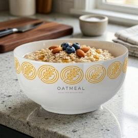 Porcelain bowl with classic rounded edges. Perfect for various types of breakfast cereals. It will perfectly display the branding on it.