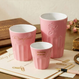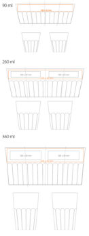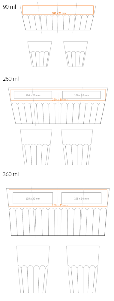 Original porcelain model without handle. The wavy structure of the bottom of the mug makes it very easy to hold. Available in three capacity versions. A design with great branding possibilities and stackability.