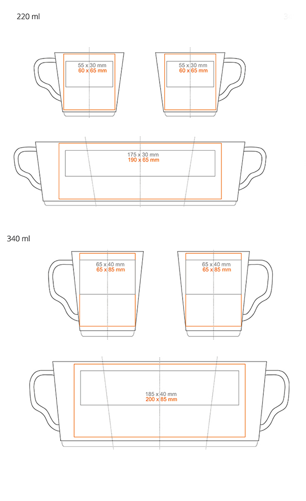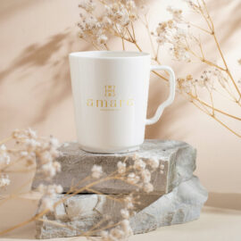 An exclusive model with an interesting shape. Made of beautiful, top-class porcelain – Fine Bone China. Extremely light with thin and straight walls that perfectly highlight the branding on them.