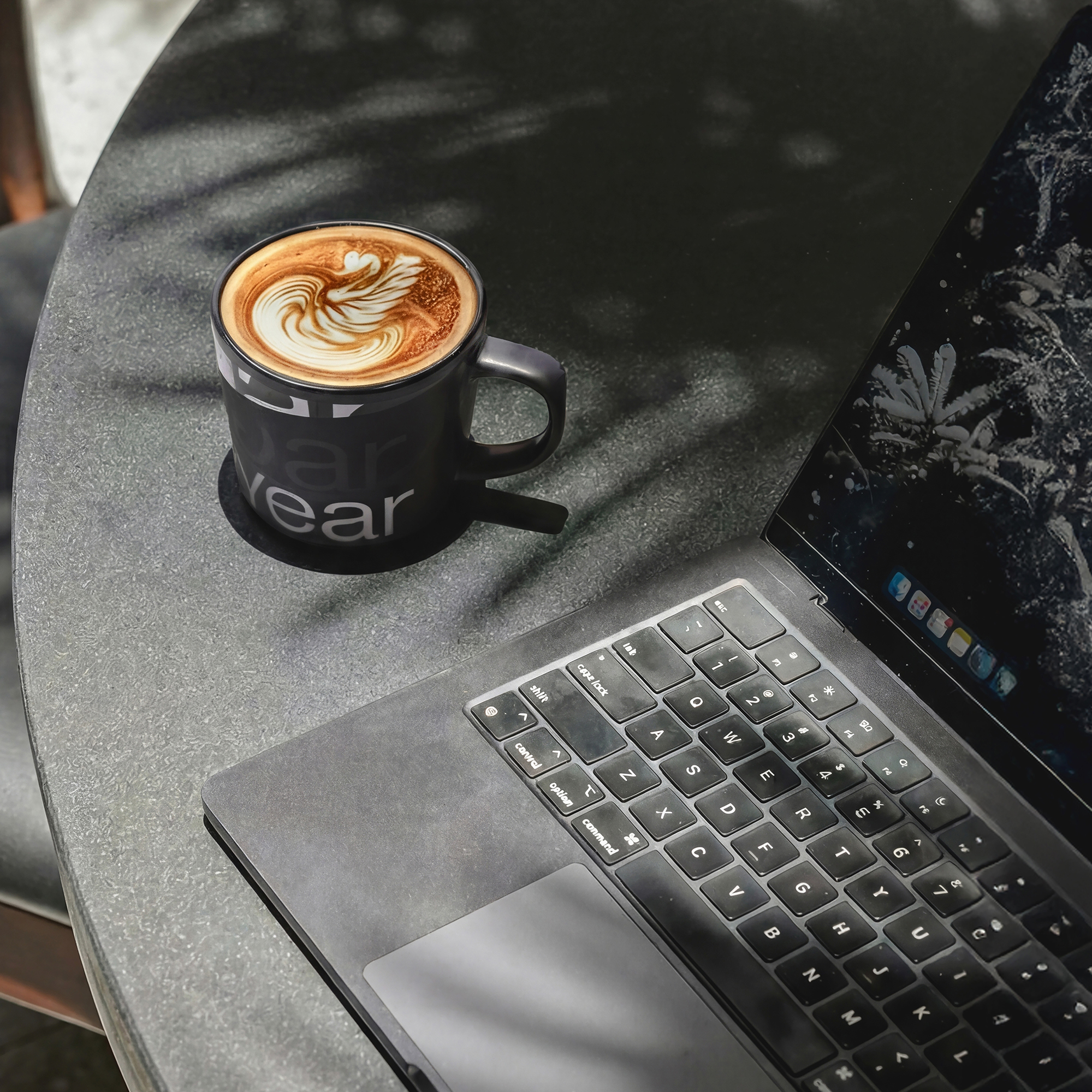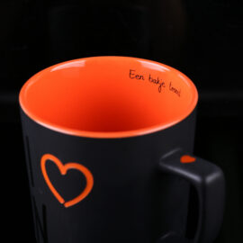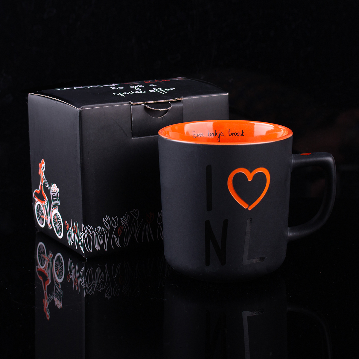 A chic matte black mug with a modern form. It has great customization possibilities.