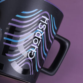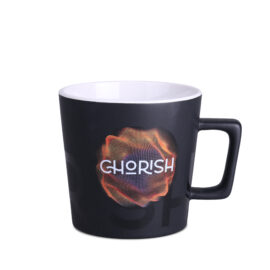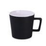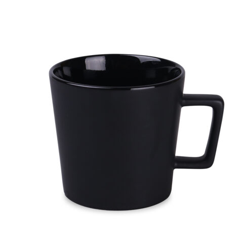 Modern mug with a black matte surface. It features a handle with an interesting, designer shape. Available with interiors in various colors
