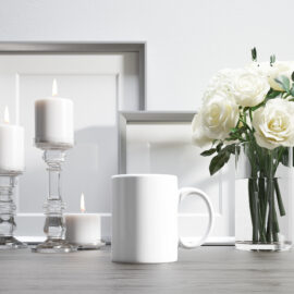 A large, simple, cylindrical mug. Its main advantage is the large print area and the good price. The mug is available in many color versions.