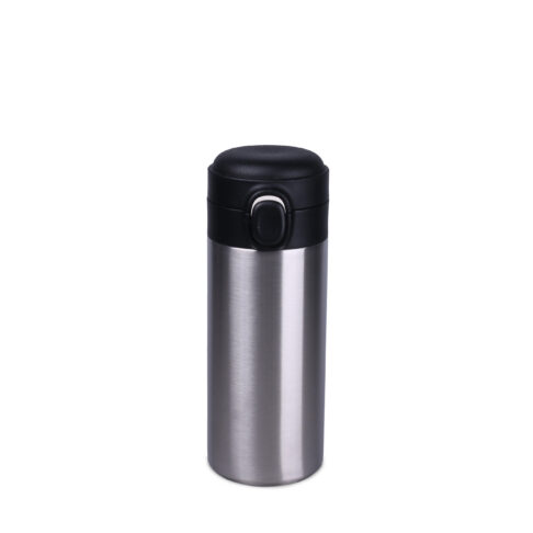 Imagine the comfort of drinking without any compromises… By choosing a Vega mug, you are guaranteed high ergonomics and comfort. This is due to the use of vacuum insulation, a hygienic and extremely comfortable mouthpiece made of safe and odorless material, a convenient “1-click” opening and a cover with the “Keep Open” position. The model is available in an eye-catching Steel color version, perfect for applying color. The Vega thermal mug is sold complete with dedicated packaging.