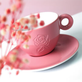 Thick-walled cup made of European porcelain. It has an elegant round handle. It is available in 3 capacity variants.