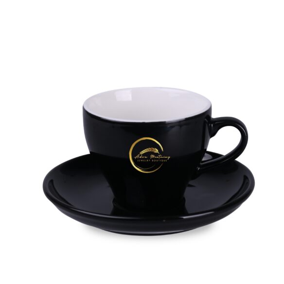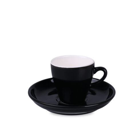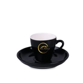 A cup with an elegant shape and black exterior. Made of high-quality porcelain. The design is in Italian style. Available in three capacities: 70/130/220.