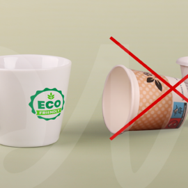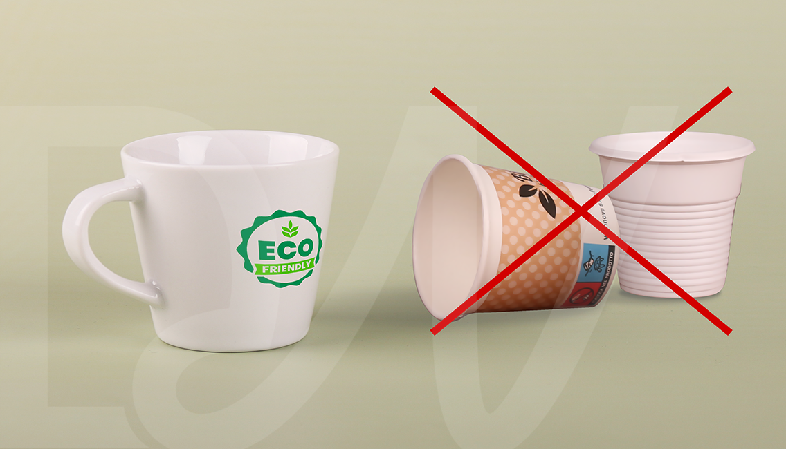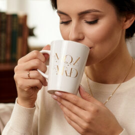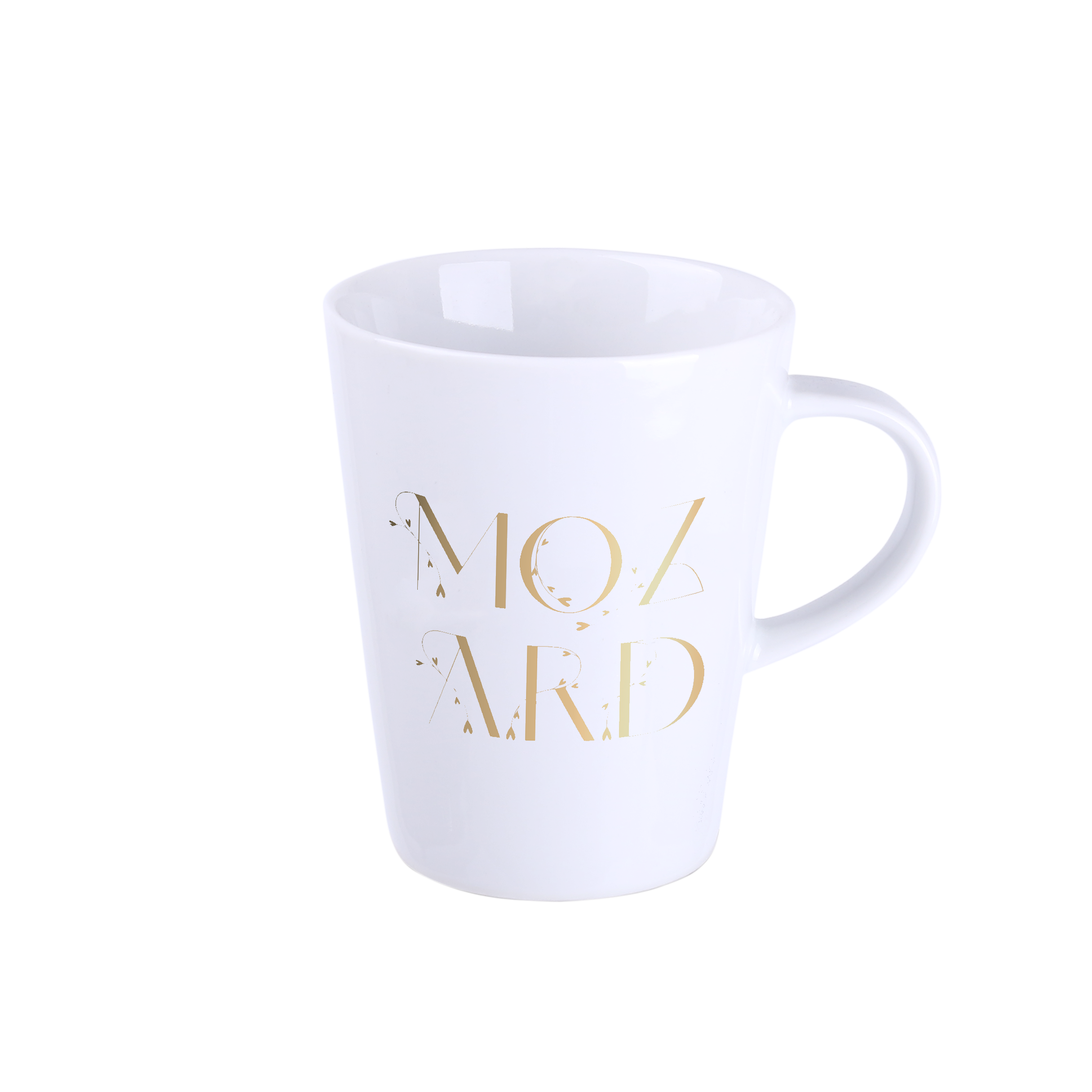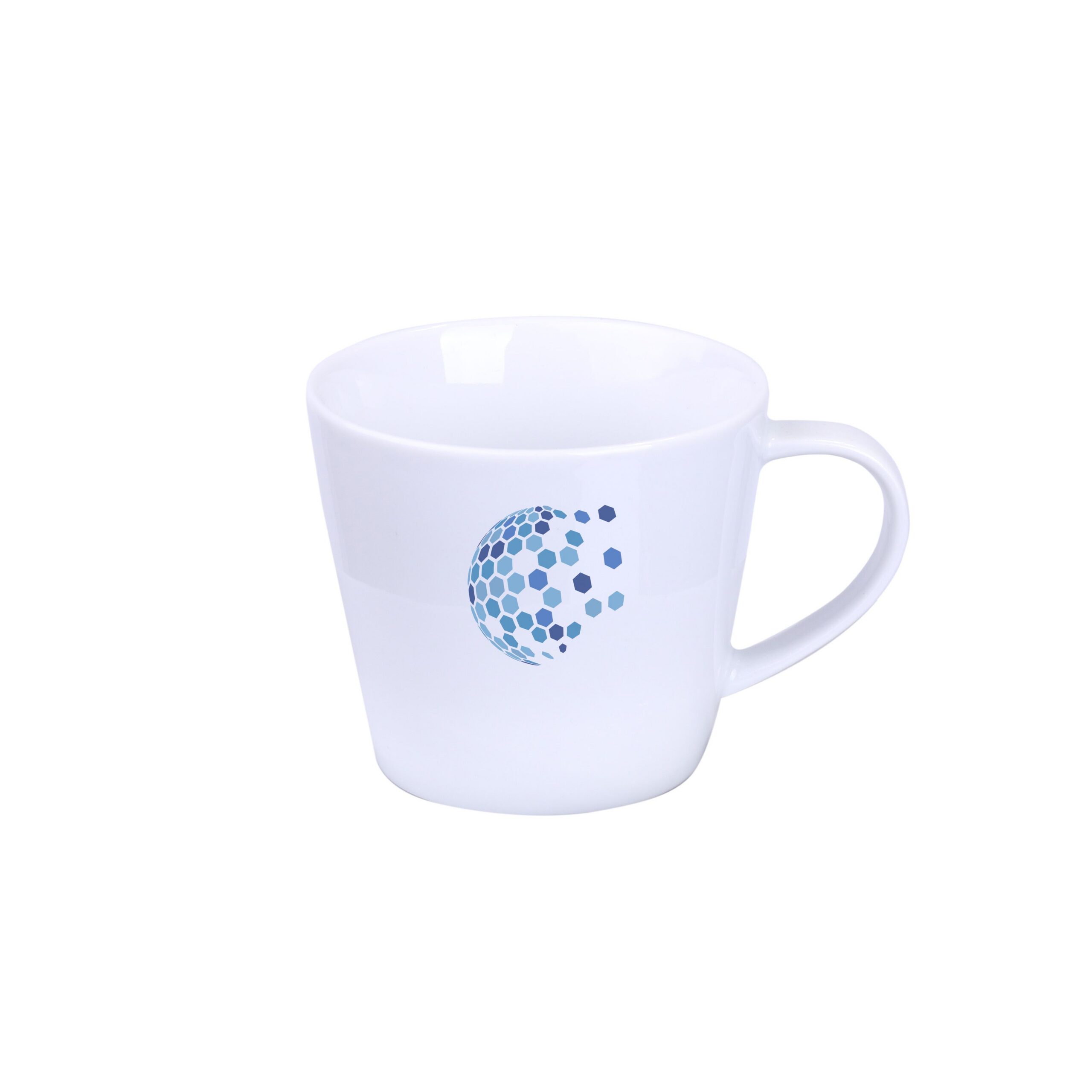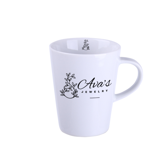 A mug with a simple, classic shape. Made of European porcelain. It has an ergonomic handle. It is available in 3 capacity variants.