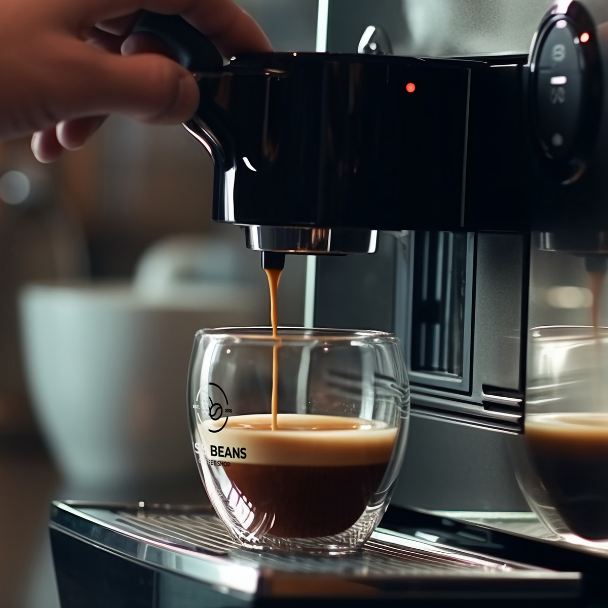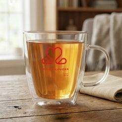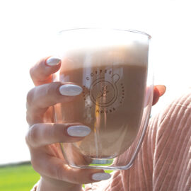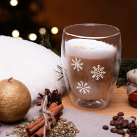 A popular glass model in three sizes. The double-walled glass gives an amazing effect of hanging the drink inside and wonderfully displays the decoration on it.