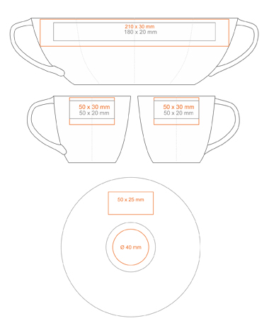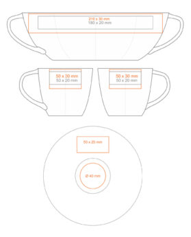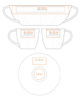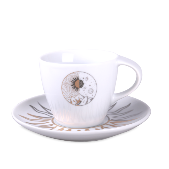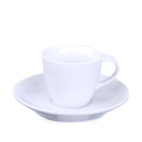 A subtle porcelain cup with an attractive handle and extensive decorative possibilities.