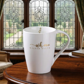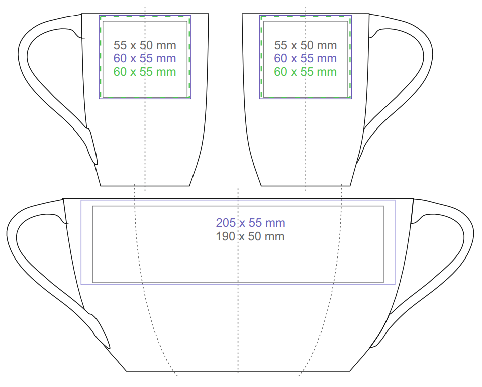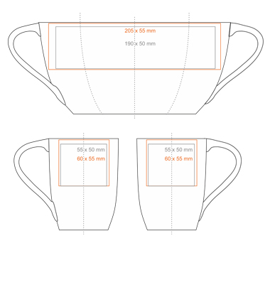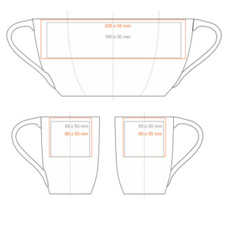 A best-selling model made of white, high-quality porcelain. Thanks to the original wave-shaped handle, it will attract attention to the promoted brand.