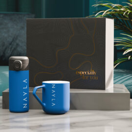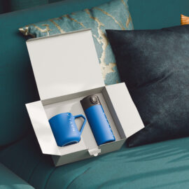 Perfekt für alle Arten von Abenteuern – der personalisierbare Thermobecher Vega in Kombination mit dem beeindruckenden Porzellanbecher Impress. Das Set ist in einer umweltfreundlichen Snowy-Verpackung verpackt und mit einer eleganten, personalisierten Banderole versehen. THE PRESENTED DECORATION IS FOR ILLUSTRATION PURPOSES ONLY AND IS NOT INCLUDED IN THE PRODUCT PRICE. THE SET IS AVAILABLE IN DEDICATEDSNOWY PACKAGING WITH A SELECTED DECORATION OPTION.