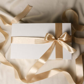 Exclusive magnetic closure packaging with the option to add a matching ribbon and wrapper