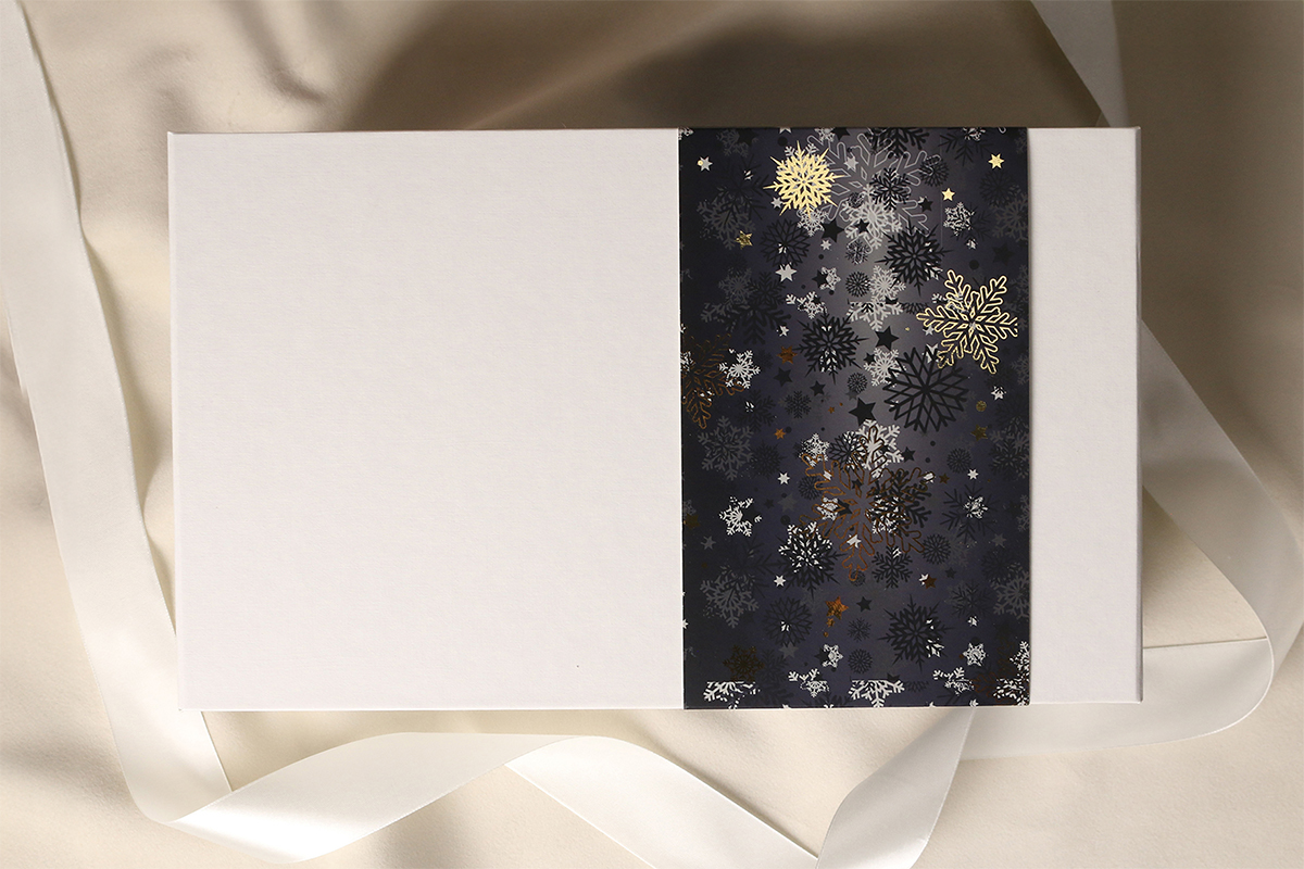 Additional customization options:Print on the mugs, company logo tag, ribbon or sleevewith a winter motif enhanced with gold detailing.