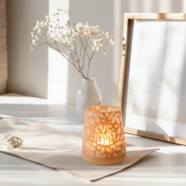 The combination of the modern form and the warmth of the lantern’s light creates an amazing atmosphere that will work in many interiors. The use of colouring on the outer wall of the windlicht will allow it to fit in even better with the branding.